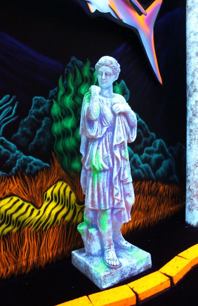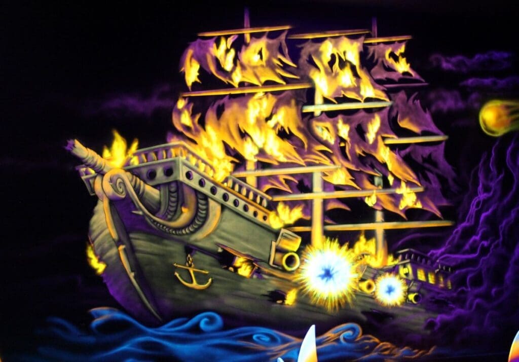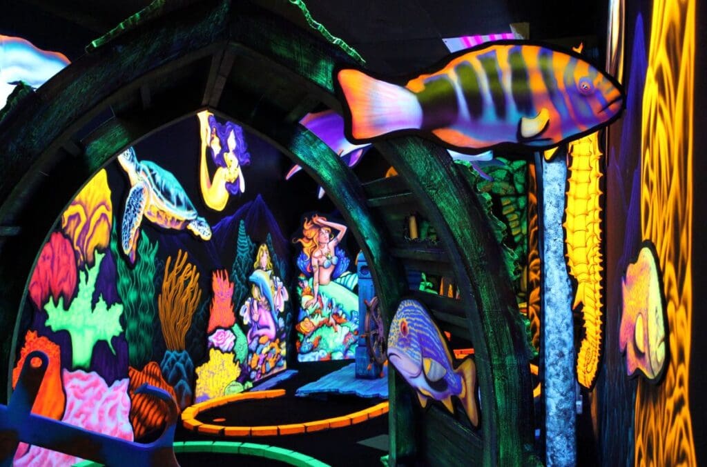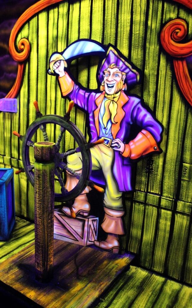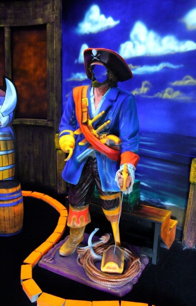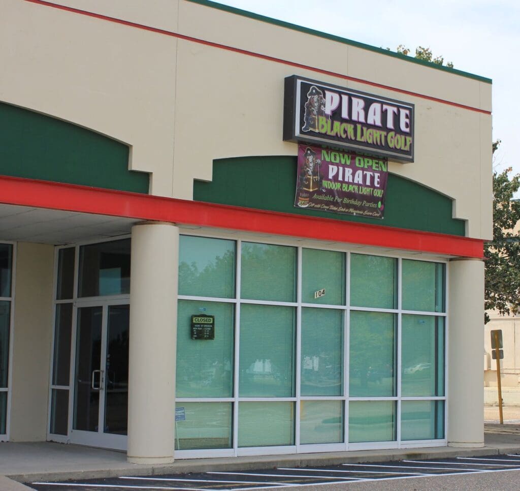 Pirate Black Light Golf is Fayetteville’s most exciting indoor miniature golf courses on the high seas! You’ll putt through pirates, parrots, cannons, and gold treasure for the most fun you can have putting indoors in Fayetteville. We are located in the Omni Family Amusement Center in the Omni Plaza Complex.